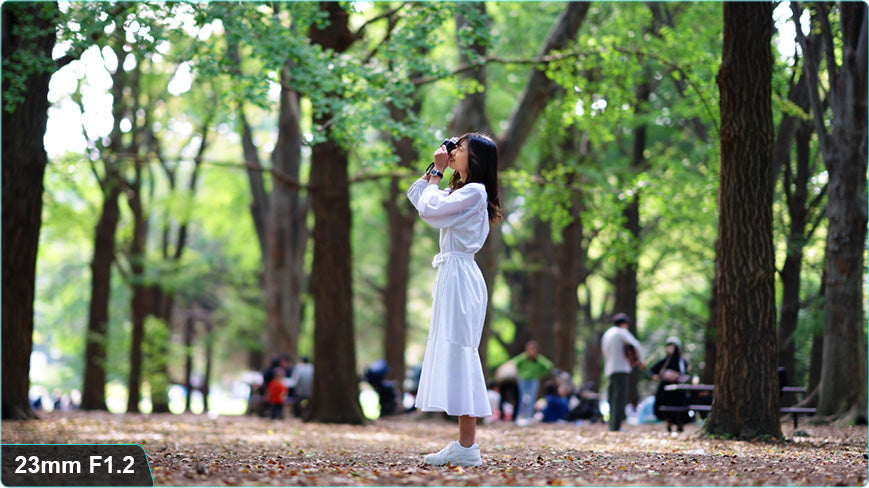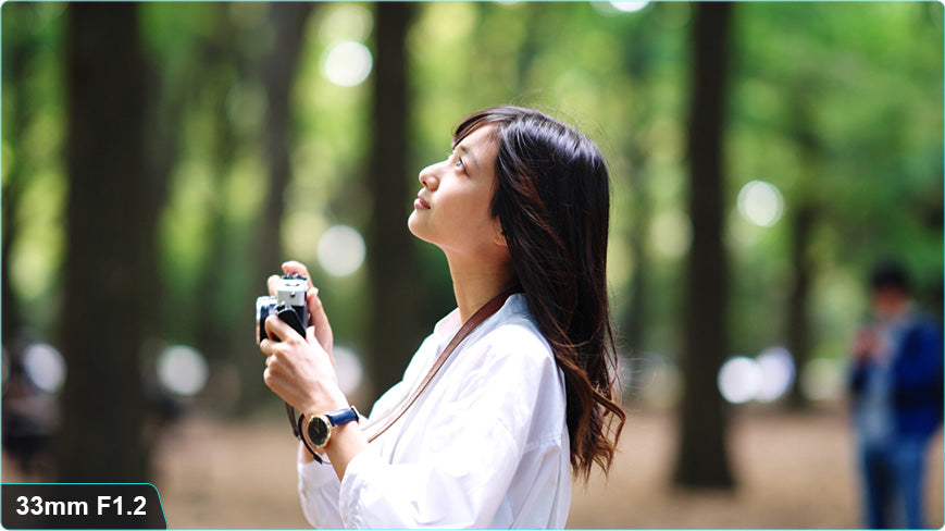F1.2 fast aperture and shallow depth of field design help separate the subject from the background.