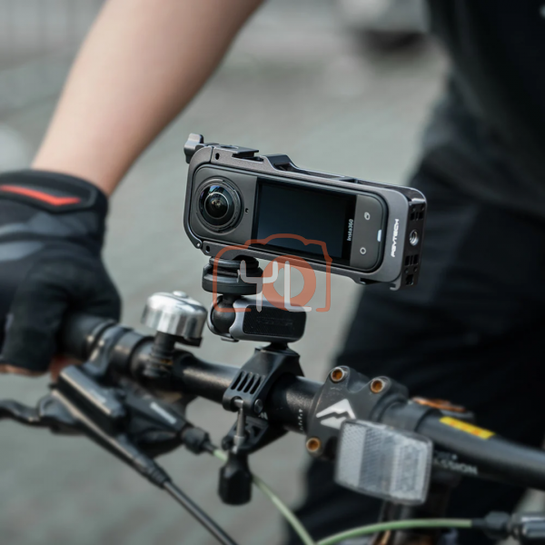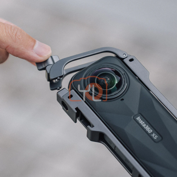 The cage features two integrated shoe mounts and two 1/4"-20 anti-twist threads that enable you to quickly add a light, microphone, or another accessory. The camera can be mounted on a tripod or handheld gear using one of the 1/4"-20 threads for vertical or horizontal shooting. The bottom of the cage also features a quick release mount that is compatible with numerous Insta360 quick release accessories. The included silicone cover protects your lenses when the camera is not in use.