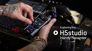 The Zoom H5studio Handy Recorder is a 4-track portable recording solution designed for videographers and content creators who need high-quality audio capture on the go. Featuring 32-bit float recording and an X/Y stereo microphone array with large 19.4mm capsules, the H5studio delivers an extended frequency response for detailed, natural sound reproduction.
