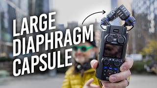 At the heart of the H5studio is Zoom's most powerful Handy Recorder yet, featuring a pair of oversized 19.4mm condenser microphones—the largest ever on a Zoom portable recorder. These capsules deliver a wider frequency response and greater sensitivity, offering unmatched detail and richness in every recording. With the ability to handle sound pressure levels up to 140 dB, the H5studio excels at capturing everything from quiet dialogue to loud live performances without distortion. The increased microphone surface area results in a more natural stereo image and enhanced spatial depth, giving your recordings a truly professional edge. Integrated RF shielding ensures that your recordings remain free from interference caused by smartphones, wireless routers, and other electronic devices.