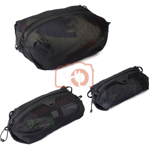 Pack and organize your gear inside a larger bag using this black Ultralight Mesh Packing Cube Bundle from Peak Design. These lightweight packing cubes have a minimalist design with a durable zippered closure. Carry loops attach an optional strap to convert the cubes to standalone sling bags. Strap pass-throughs connect the cubes to other Peak Design bags for seamless travel. The cubes fold flat or roll up for storage.