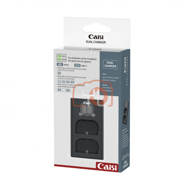 The dual charger allows you to charge two batteries simultaneously, which is ideal for photographers who need to keep multiple batteries ready for use. The charger supports charging via USB, making it versatile and convenient for use with various power sources such as laptops, power banks, and car adapters.