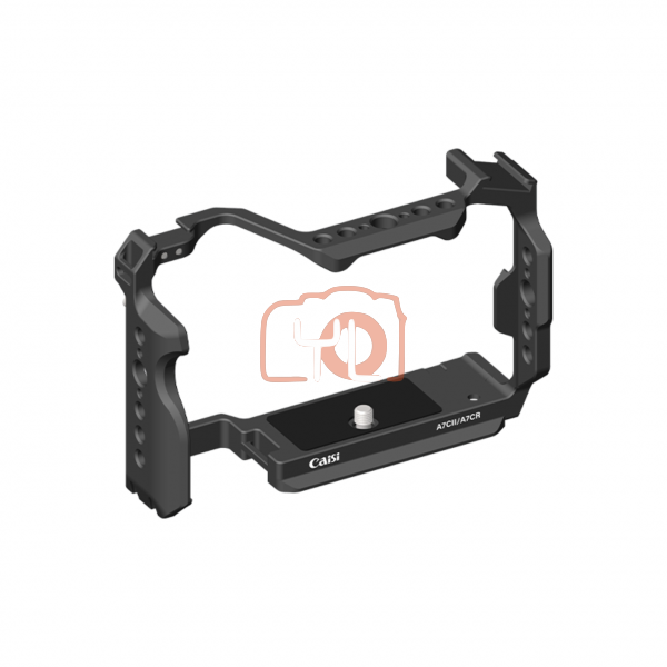 Rig up your Sony A7CII/A7CR with the Caisi Cage. The formfitting, open design protects your camera while maintaining access to the camera’s controls, ports, battery, and card slot. The cage provides a cold shoe on the top right corner so you can easily mount a microphone without getting in the way of your camera’s display. Other accessory mounting points include multiple 1/4″-20 threaded holes, ARRI-style locating holes for mounting a magic arm (available separately), holes for mounting a wooden handle and a lens holder (both available separately), and both 1/4″-20 and 3/8″-16 screw holes on the bottom.
