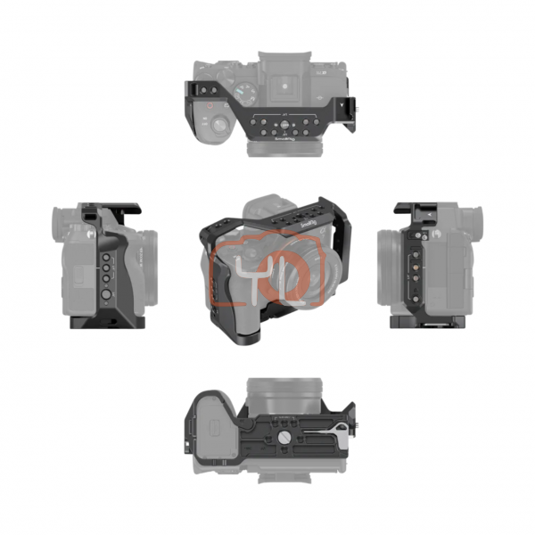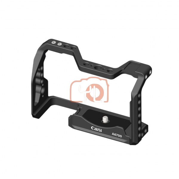 Rig up your Sony A6700 with the Caisi Cage. The formfitting, open design protects your camera while maintaining access to the camera’s controls, ports, battery, and card slot. The cage provides a cold shoe on the top right corner so you can easily mount a microphone without getting in the way of your camera’s display. Other accessory mounting points include multiple 1/4″-20 threaded holes, ARRI-style locating holes for mounting a magic arm (available separately), holes for mounting a wooden handle and a lens holder (both available separately), and both 1/4″-20 and 3/8″-16 screw holes on the bottom.