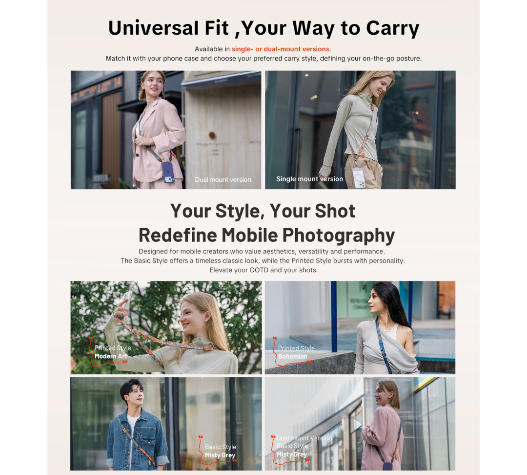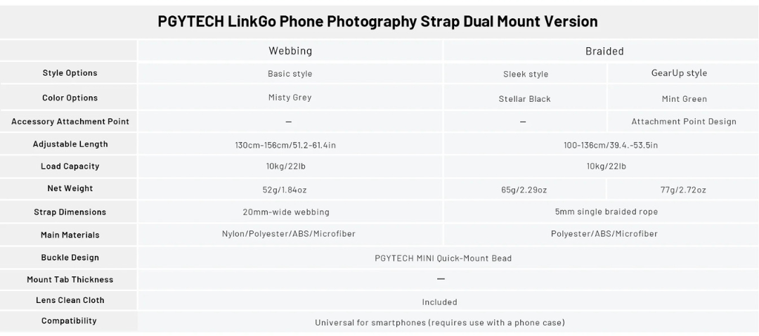 PGYTECH LinkGo Phone Photography Strap Dual Mount Version (Webbing - Misty Grey)