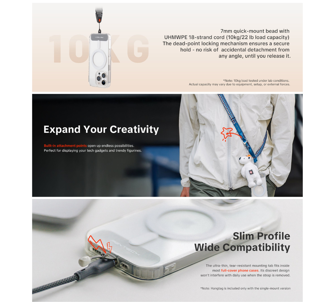 - Multi-functional Attachment Points: Bottom mounting holes support accessories like headphones, card holders, and other small items.