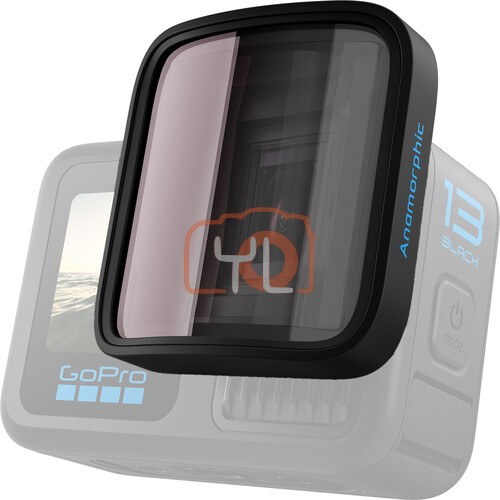 The Anamorphic Lens Mod from GoPro attaches to your HERO13 Black camera using its HB-series lens mount and upgrades the camera with an anamorphic lens for cinematic anamorphic capture. It features less distortion than with the ultra-wide lenses and provides in-camera de-squeeze, allowing you to record in 16:9 or 21:9 cinematic aspect ratios. The lens installs without any tools, and it is made from scratch-resistant, waterproof glass.