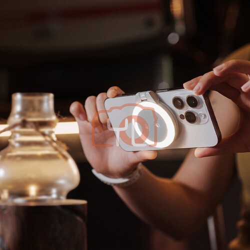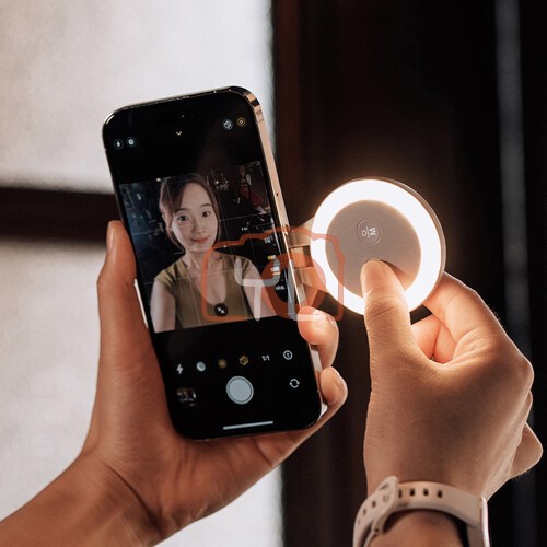 The MagGlow Phone Fill Light from PGYTECH is a compact LED light for everyday selfies, portraits and more. This handy light minimizes facial shadows for a naturally smooth look. The ring light design adds a dazzling sparkle to the eyes, ensuring every selfie radiates with captivating charm. It can be easily attached to the MagCam Phone Grip, MagSafe-enabled phones and cases, or any available metal surface. Two buttons control brightness and color temperature, and the battery delivers up to 30 minutes of operation. 34 high-efficiency LED bulbs provide adjustable brightness and have a color-accurate 95 CRI rating. The light doubles as a phone stand for tabletop shooting or viewing content. It rotates 290° to create ideal lighting for your selfies and shots of others.