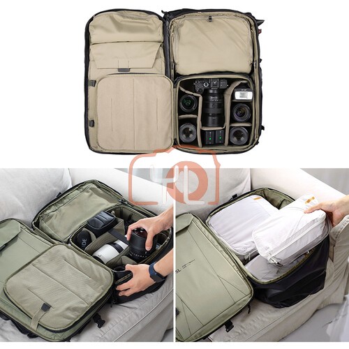 Carry your personal items while commuting or traveling in the 35L OneMmo Travel Backpack in Twilight Black from PGYTECH. The front compartment expands up to 15L to offer a total maximum capacity of 50L, making it ideal for large or bulky items. It is made from water-resistant polyester and has durable YKK zippers. The waist belt can be removed and used as a shoulder strap for cross-body carrying, or use the handles to carry it like a duffel. A designated laptop pocket can fit devices or notebooks up to 16". This pack has straps to secure a camera insert or a clothes storage set, which are not included. A zippered, flexible divider can be used to separate your items in your pack for enhanced organization.