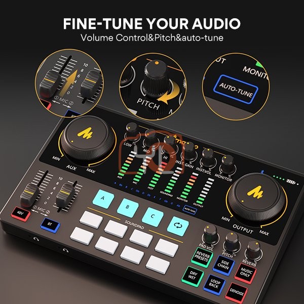 Compatible with most analog microphones in the market, including XLR condenser/dynamic microphones, 6.35MM dynamic microphones, and 3.5MM microphones.