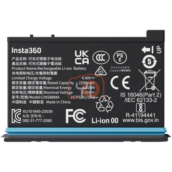 Power your X4 Air 8K action camera with this Rechargeable Battery from Insta360. With a capacity of 2010mAh, this battery ensures you can capture all the action in 8K for up to 88 minutes. This lithium-ion battery can be recharged to 100% in less than an hour for continued use in the camera or with a separately available charging case. It is rated for use in cold temperatures down to -4°F.