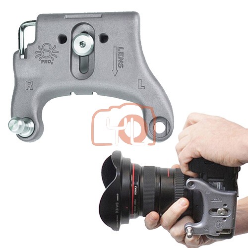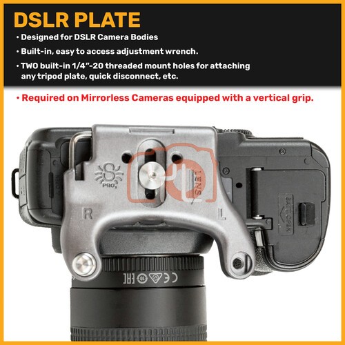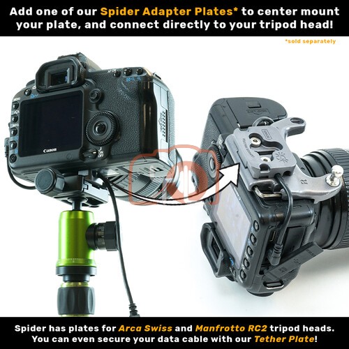 The SpiderPro Plate and Pin v2 from Spider Camera Holster is an ergonomic and well-balanced aluminum plate designed to fit on your DSLR camera and be used with the SpiderPro Holster System. Once the plate is installed, you can carry your camera on your hip or shoulder in comfort and maintain complete access to the camera's battery compartment. The rubber grips and anti-twist pins of the plate ensure that your camera remains secure.