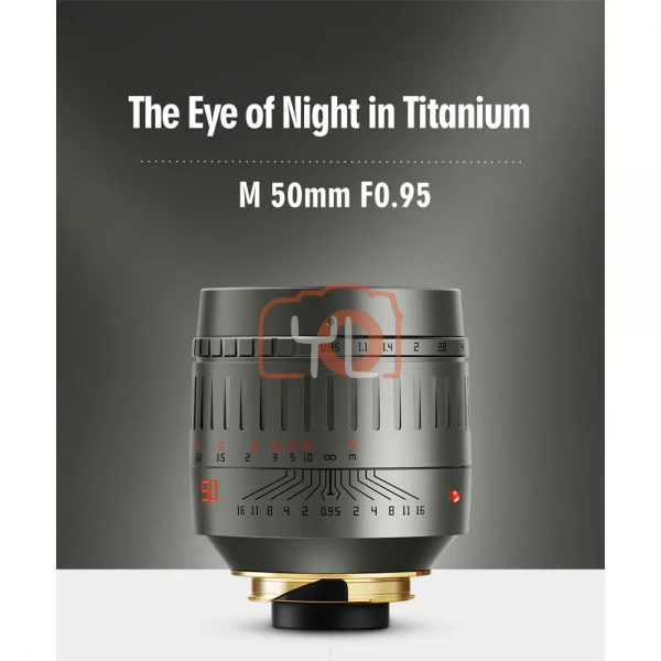 Distinguished by its bright design, the TTArtisan 50mm F0.95 is a normal-length lens for Leica M-mount rangefinder cameras. Its impressively fast maximum aperture offers a wealth of control over depth of field and also benefits working in dark and low-light conditions. Complementing the speed is an advanced optical design that uses a variety of specialized elements to control spherical and chromatic aberrations in order to achieve sharp imagery with accurate colors. The lens's manual focus design permits working with subjects as close as 2.3' away, and it features a 14-blade diaphragm that contributes to a smooth bokeh quality.