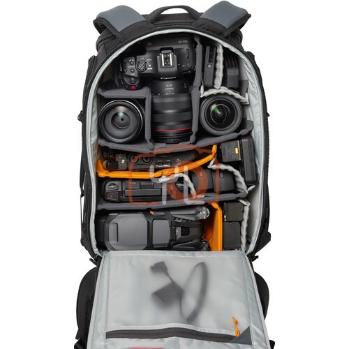 Keep your pro DSLR kit with long lenses and other gear protected in the 28L, black ProTactic BP 450 AW III Backpack. Featuring multiple ways to quickly access your gear including side doors, a wide top, and full back entry, the pack has MaxFit dividers so you can customize the interior to fit your needs. A CradleFit pocket stores your 16" laptop, and the hybrid webbing attach system is compatible with SlipLock tabs and MOLLE/PALS pouches.