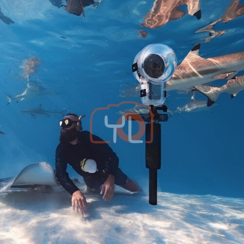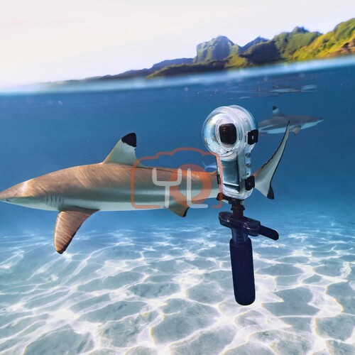 The Insta360 Dive Buddy allows you to film hands-free underwater with your X series action camera. The mini selfie stick is depth rated up to 164' below the surface and includes a weight plate set that allows you to adjust its neutral buoyancy for hovering shots. A stabilizing fin helps offset the motion of the ocean. The Dive Buddy has a 1/4"-20 screw for your X series camera as well as two 1/4"-20 threads, one on the side of the main mount and one at the bottom for the included underwater tripod. A wrist strap adds another layer of security when you're diving down.