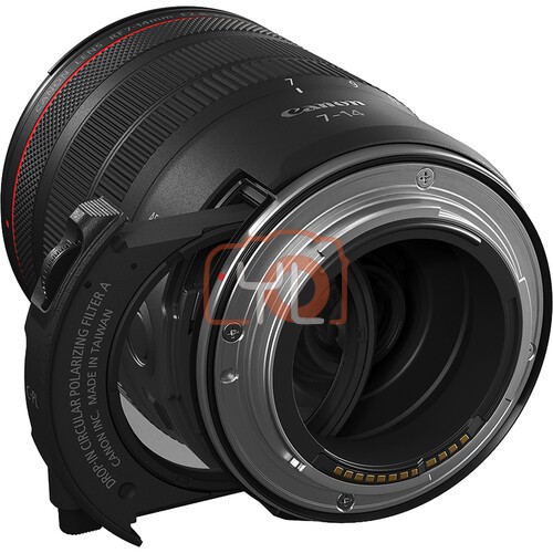 - One of the most unique design details of this lens is the use of Canon's rear drop-in filter system, which debuted with their Drop-In Filter Mount Adapter EF-EOS R.