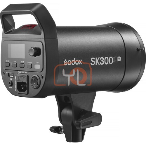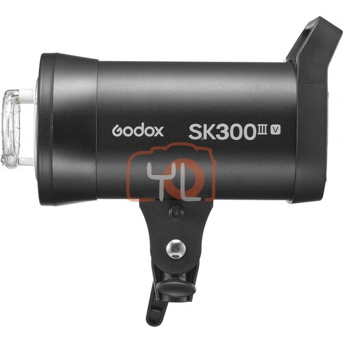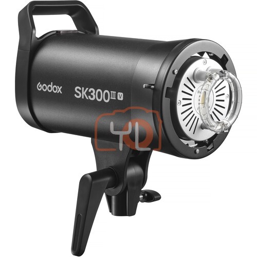 Easily light small scenes with consistent settings using the SK300III-V Studio Flash Monolight from Godox. This compact 300Ws strobe features a guide number of 190' as well as a 10W LED modeling lamp with 5-100% dimming for a convenient preview of the lighting setup. A 3-second auto-memory preserves your last settings, keeping work flowing quickly between pauses. With a 5700K color temperature, the flash features a 0.1 to 1.5 second recycling time with flash durations as short as 1/380 sec. Power is variable from 1/32 to 1/1 with ±0.1-stop fine adjustment. Triggering options include sync cord, optical, test button, and 2.4G wireless power control. The SK300III-V weighs only 4.6 lb, making it easy to move around your studio as needed.