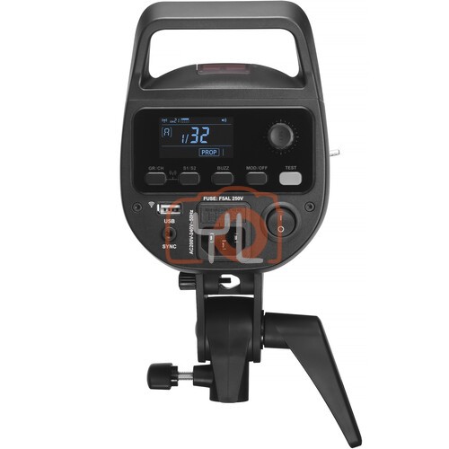 The rear LCD screen of the flash allows you to see all current settings at a glance. Right next to it, there is a knob for adjusting power, channel, and group. Additional buttons on the back of the strobe give quick access to all remaining lamp settings and functions.