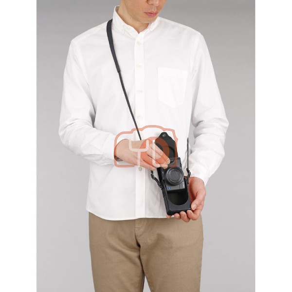 The black leather Vertical Soft Carrying Case for the DSC-RX100 and RX100 II from Sony is customized for your RX100 digital camera. The case features an embossed Sony logo on the front. Included with the jacket is a removable, adjustable shoulder strap that back buckles to the camera's two strap lugs.